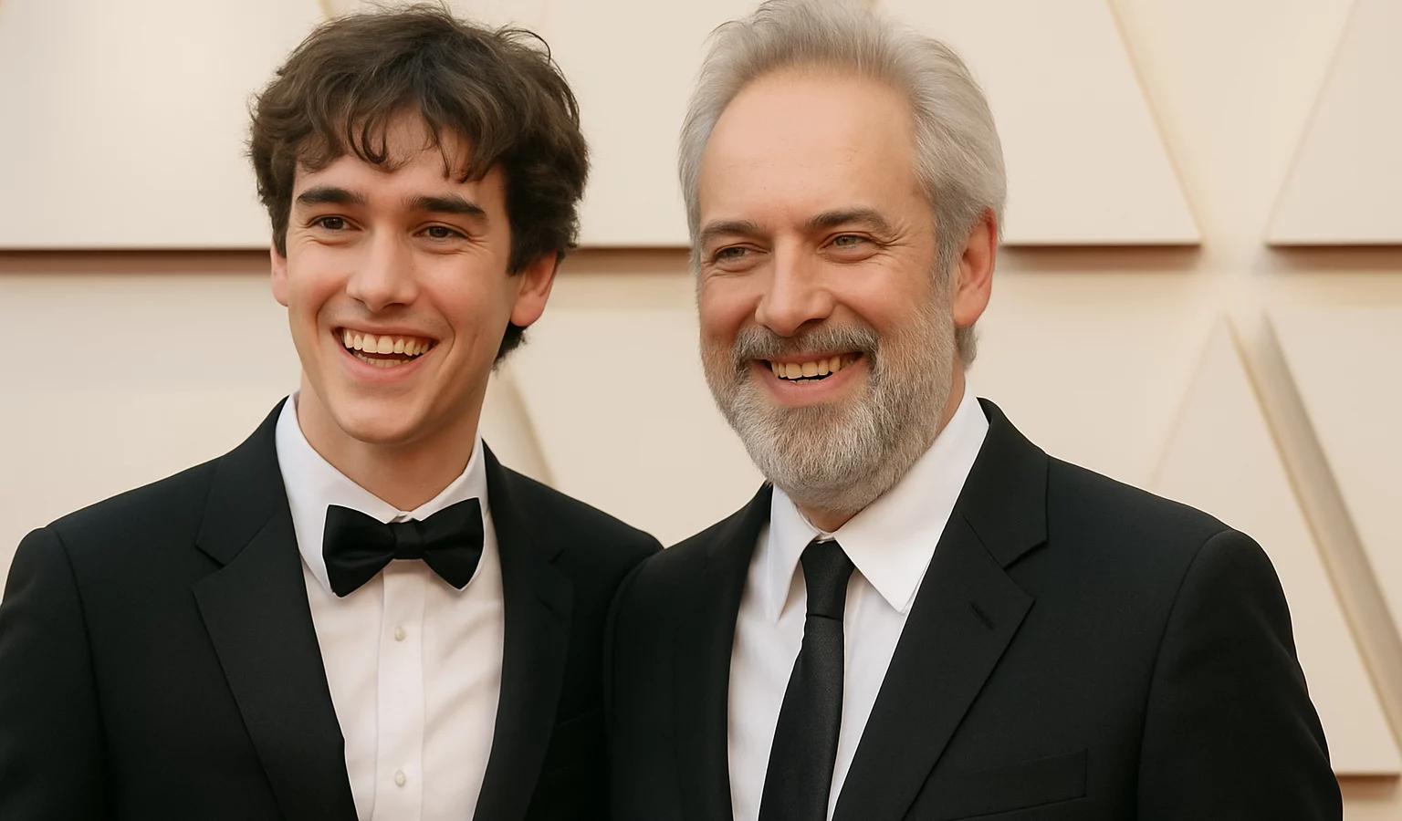 Sur le tapis rouge, Joe Mendes a surpris en apparaissant aux côtés de son père, le réalisateur Sam Mendes. Le duo a attiré l’attention des photographes avec une démarche détendue et un sourire complice.