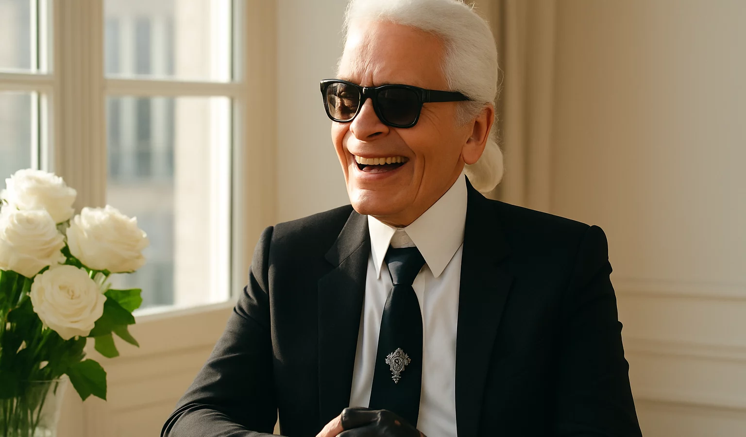 Son héritage se lit dans les photographies et les collections, dans les silhouettes qui restent gravées dans les mémoires : le noir signature, la chemise blanche et les lunettes noires, symbole d’une époque et d’une approche durable de la mode.